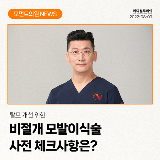 탈모 개선 위한 비절개 모발이식술 사전 체크사항은? | 모먼트의원 | 2022-08-09 |
