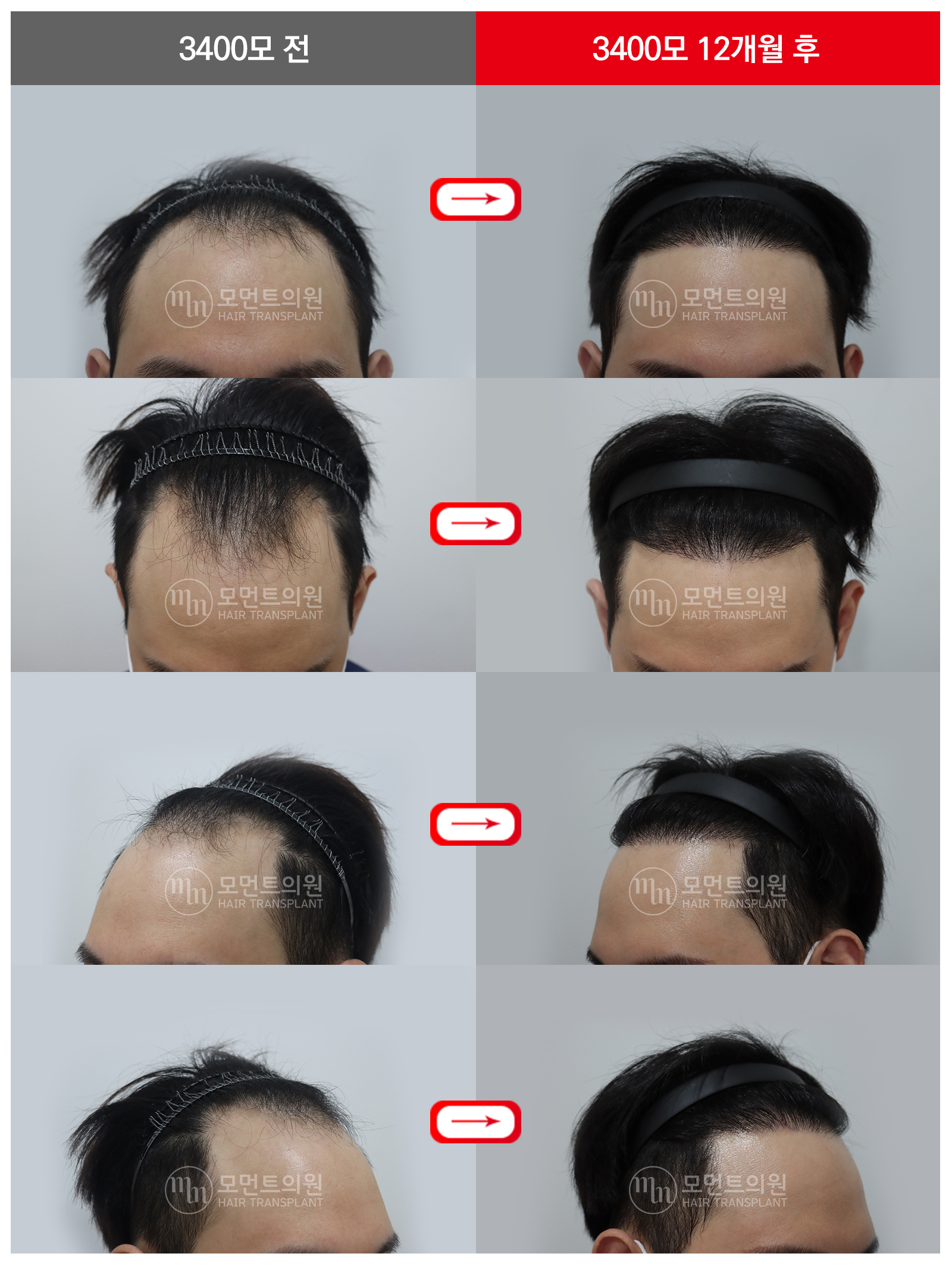 절개 모발이식 3400모 12개월 전후